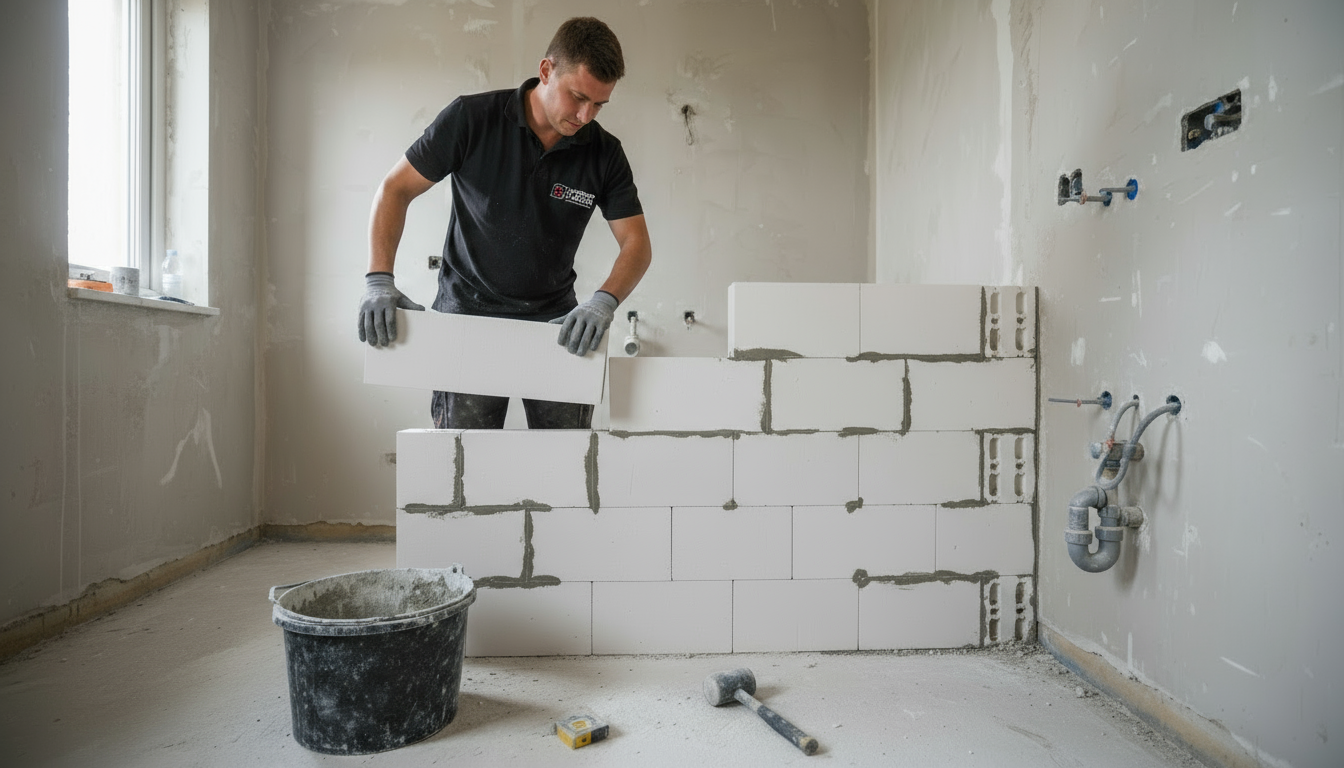Wir führen Maurerarbeiten in Ihrem Badezimmer durch. WC, Badewanne oder Duschtassen vermauern wir professionell.